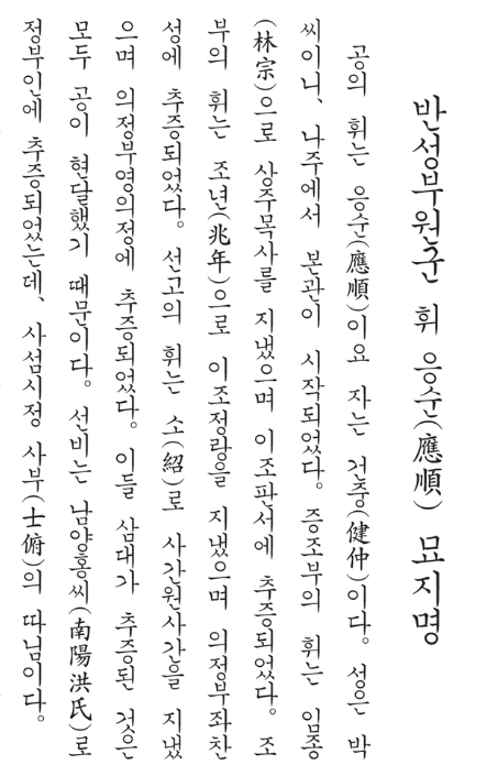 영돈녕공 휘 응순 묘지명 李珥 撰