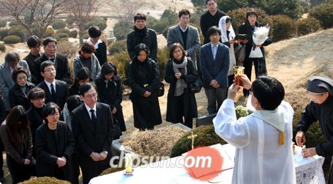 소설가 고(故) 박완서(1931~2011)의 50재(齋) 추모식이 12일 경기도 용인 천주교공원묘지에서 열렸다. 장녀 호원숙(57)씨는 "불교식 49재로는 11일이지만, 돌아가신 지 50일째인 오늘 천주교식으로 미사를 드린다"고 했다. 1984년 고인에게 세례를 준 김자문 신부가 이날 미사를 집전했다. 신부는 고인을 추모하고 유족을 위로한 뒤 작가가 산문집 '한 말씀만 하소서'에 썼던 글을 인용했다. 1988년 남편과 아들을 같은 해에 떠나보내는 비극을 겪은 뒤의 고백이다.