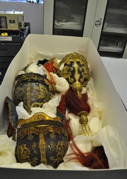 수장고에서 투구를 꺼내는 과정에서 커민스 큐레이터는 구석 한켠에 숨겨져 있던 머리장식을 뒤늦게 발견했다. 커민스 큐레이터는 “머리장식이 보존돼 있다는 것을 오늘 처음 알았다”고 놀라워 하면서 “없어진 날개 장식도 어딘가에 있을 가능성이 있다”며 추가적인 확인 작업을 약속했다.