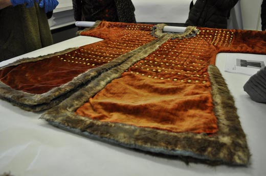 또한 혜문 스님은 “1897년 대한제국 창립 이후는 신식 군대 위주로 군제가 개편되었으므로, 대한제국 이전의 물건으로 추론할 수 있다”면서 “이 투구는 유물번호 X957.1b 용문두정갑옷과 동일한 재질로 만들어진 것을 확인했다. 의복의 제작 시기는 150년을 넘지 않아 보이므로 철종 때까지 소급하기는 어렵고 고종이 착용한 물건으로 고증해 볼 수 있다”고 말했다.