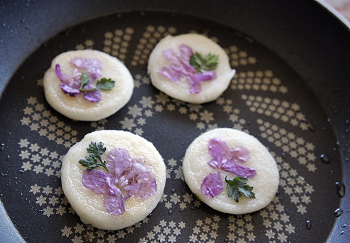 진달래꽃이 사뿐히 올려 만든 화전을 먹을 가족들 생각을 하니