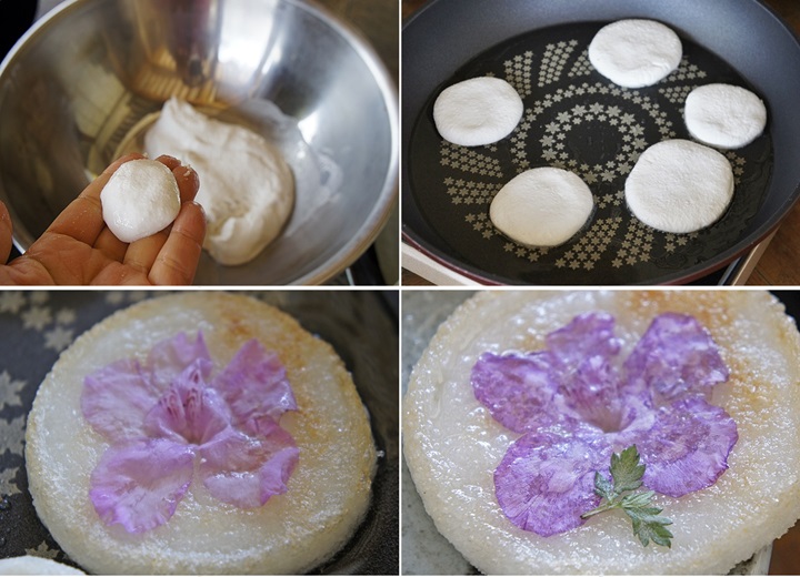 5. 동그랗게 빚은 아래쪽이 투명해지면 뒤집어 거의 익었을때