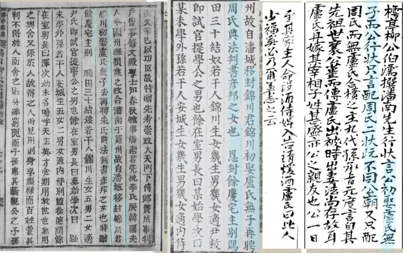 初娶盧氏無子 (去)再聘朱氏...류백유가 쓴 문정공의 행장에 짤막하게 소개되고 있는 첫째부인 노씨 祖妣님이십니다.